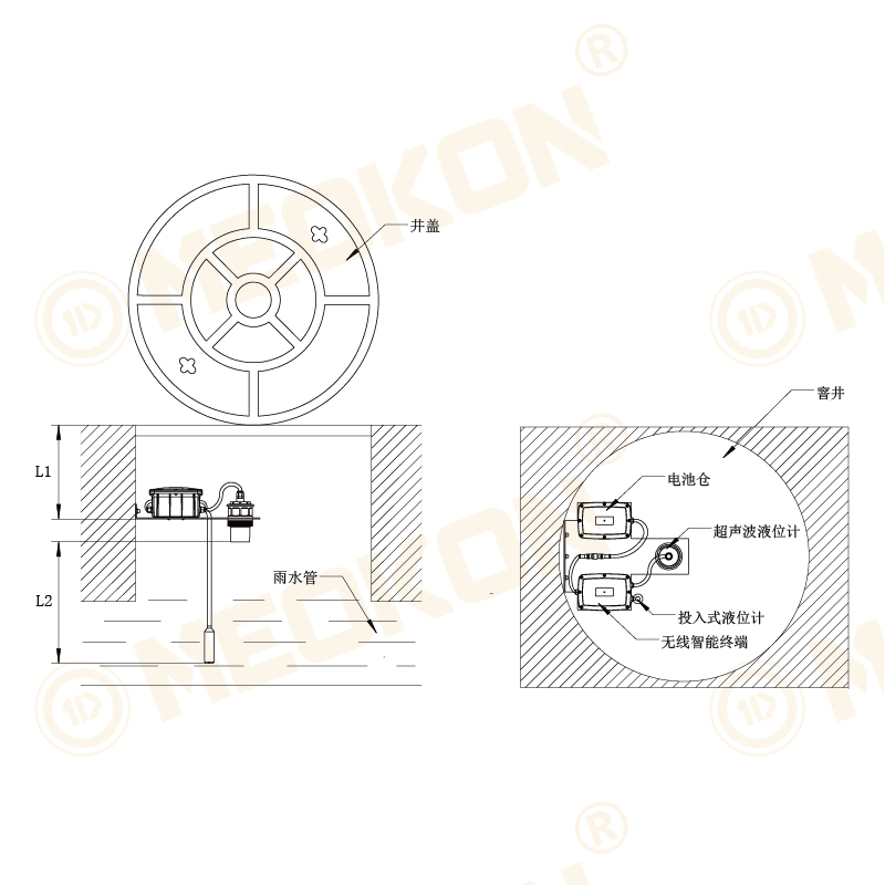 該系列采用了超聲波液位計和投入式液位計雙傳感器終端對窨井水位進行監(jiān)測,既保證了水位的準確性,同時也增加了設備的可靠性。