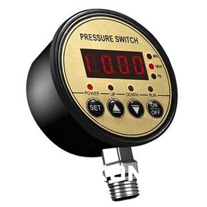 該款壓力開關(guān)集顯示/控制于一身, 用在空壓機(jī)上,不但替代了電接點(diǎn)壓力表,同時可以省去空壓機(jī)上的壓力保護(hù)器或機(jī)械保護(hù)開關(guān)以及繼電器.