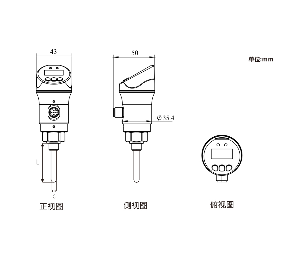 該款溫度開(kāi)關(guān)配備多個(gè)功能按鍵,用戶可快速設(shè)置、上下限設(shè)置,遲滯模式/窗口模式等多種功能。配有標(biāo)準(zhǔn)5芯M12航插線,用戶可直接代替舊機(jī)械開(kāi)關(guān)。